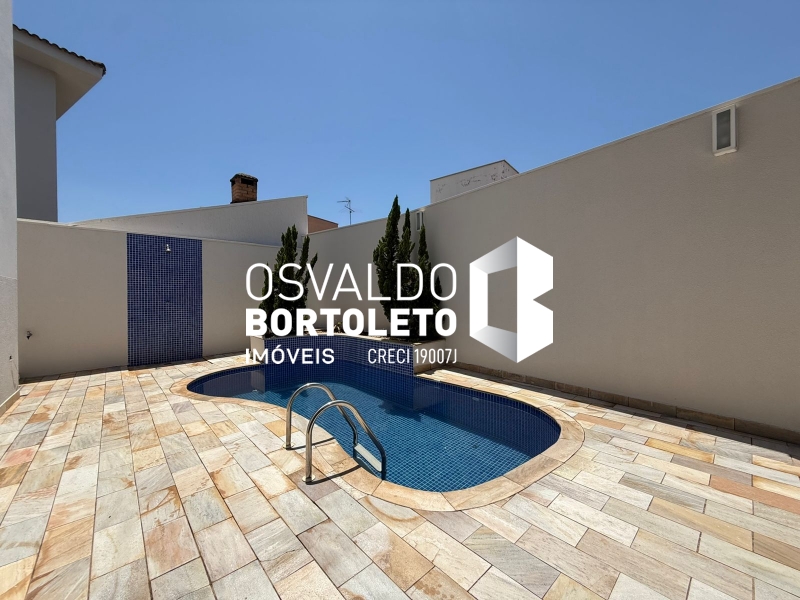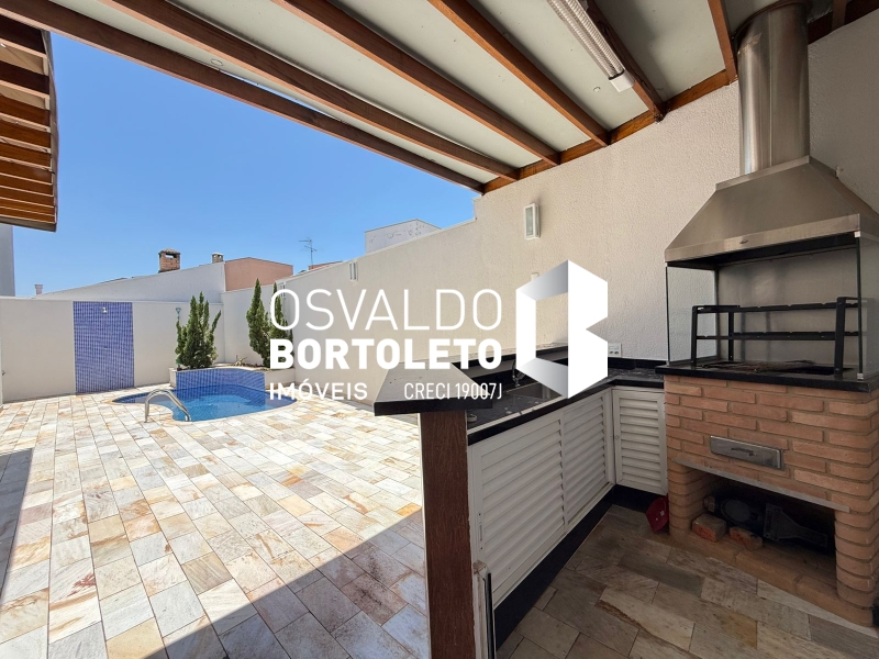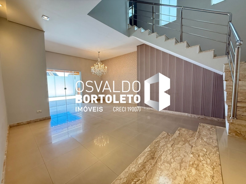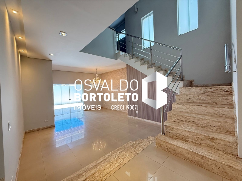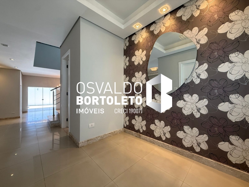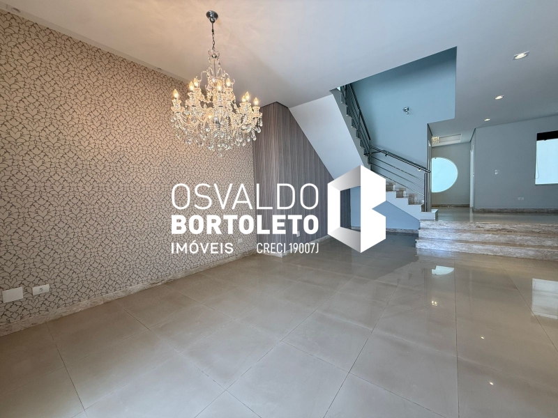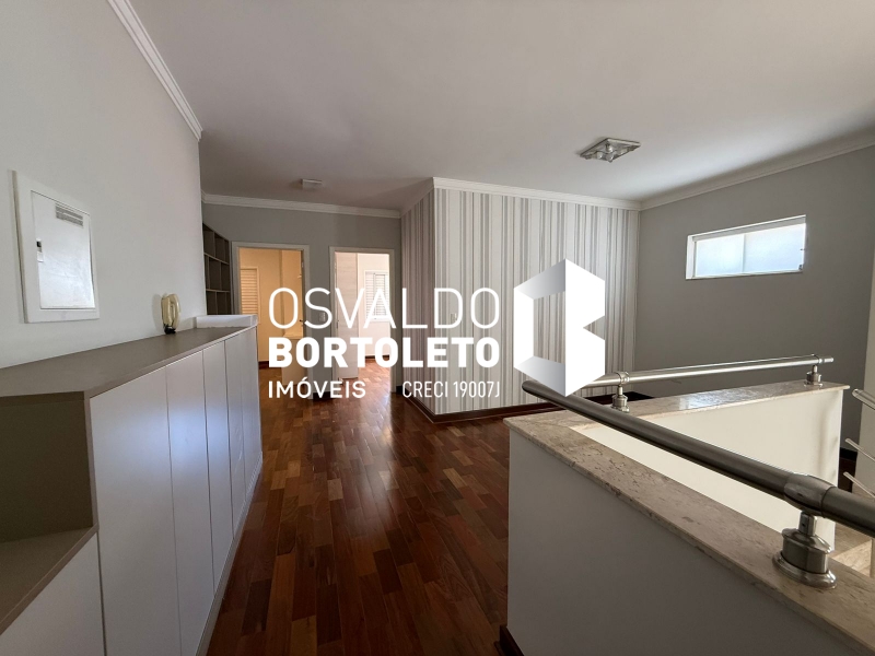 SOBRADO COM ABRIGO PARA 4 CARROS - 2 COBERTOS, HALL DE ENTRADA, SALA DE ESTAR, DE TV E SALA DE JANTAR COM SANCAS DE GESSO, LAVABO, COZINHA AMPLA PLANEJADA, DESPENSA, ÁREA DE SERVIÇO COM ARMÁRIOS, BANHEIRO COMPLETO, VARANDA, ESPAÇO GOURMET E PISCINA. NA PARTE SUPERIOR: 3 SUÍTES, SENDO 2 COM ARMÁRIOS EMBUTIDOS E 1 MASTER COM CLOSET, ESCRITÓRIO E VARANDA. COMPLETA DE AR CONDICIONADO E COM SISTEMA DE AUTOMAÇÃO.